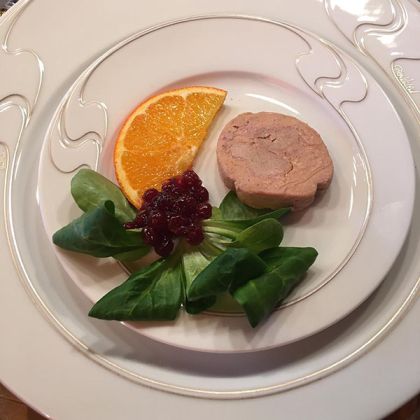 * Kross gebratene Preiselbeer-Portwein-Wachtel auf Speck-Orangen-Walnuss-Feldsalat